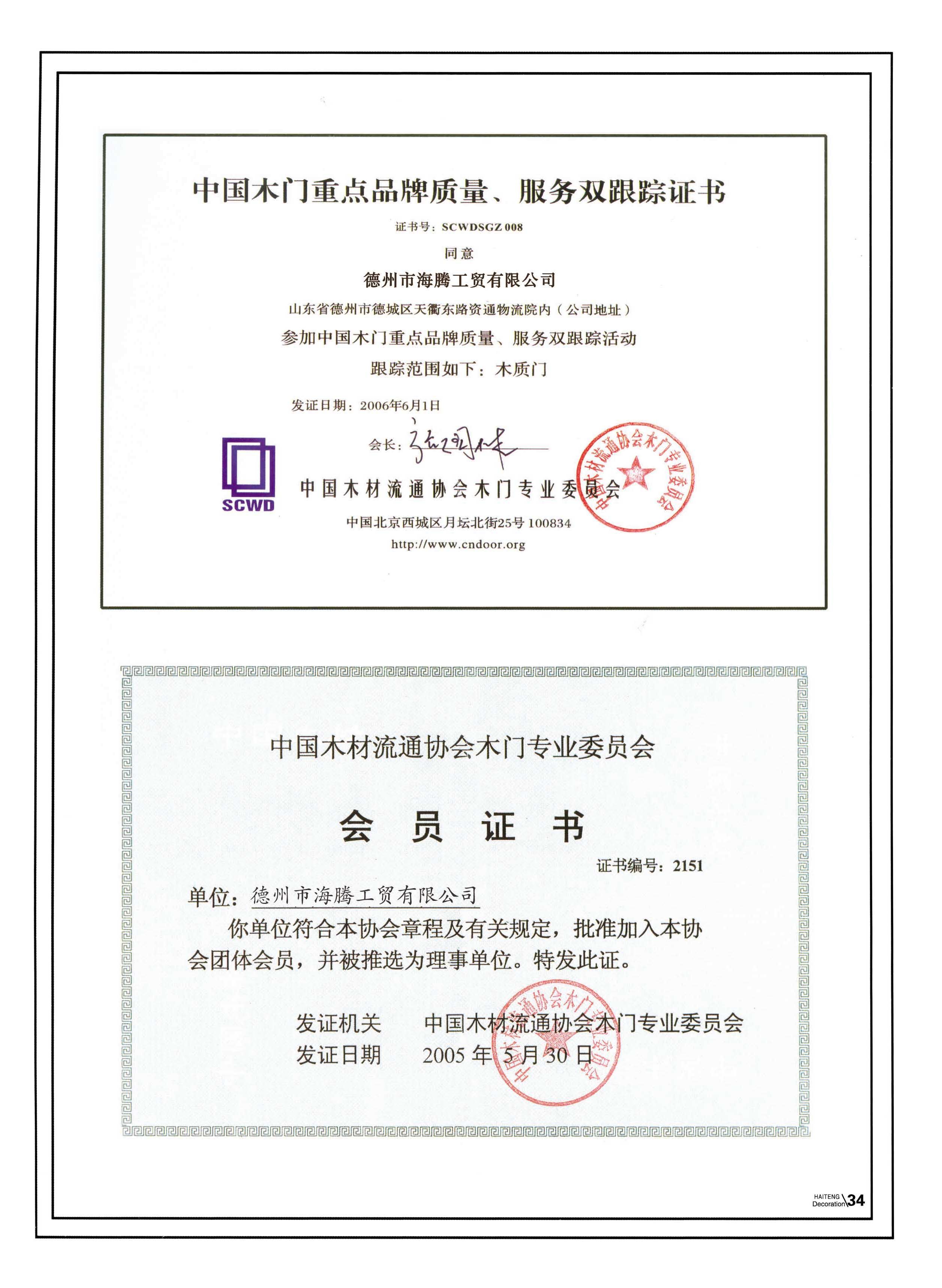 中國(guó)木材與木制品流通協(xié)會(huì)木門專業(yè)委員會(huì)副會(huì)長(zhǎng)單位,堅(jiān)持走"專精特新"發(fā)展之路。